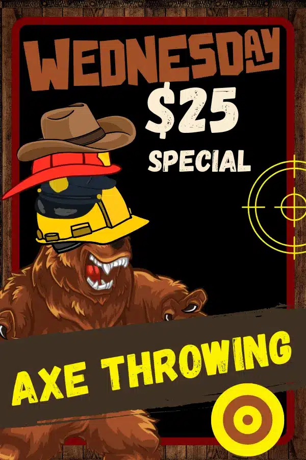 There’s always something happening at Axe-Mania! Join us throughout the week for themed nights, drink specials, discounted axe throwing, and great company. Whether you’re a first-timer or a seasoned thrower, our weekly events are the perfect excuse to grab your crew and hit the lanes.